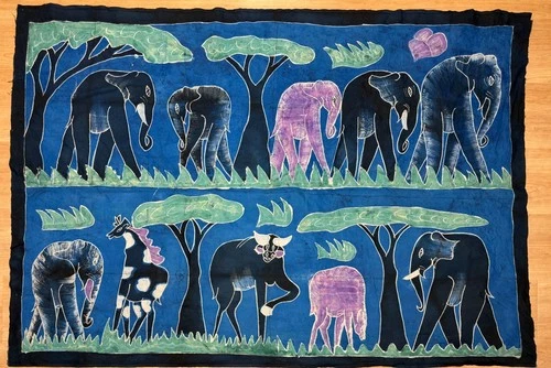 Ghanaian Hand Dyed Batik Fabric Print Cotton Artwork Wall Hanging - 53" X 78"