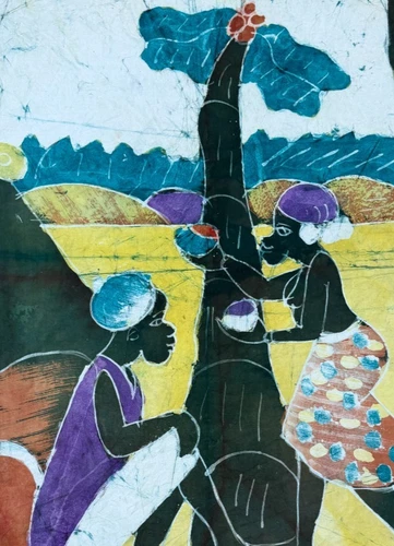 Ghanaian Hand Dyed Batik Fabric Print Cotton Artwork Wall Hanging - 38" X 27"