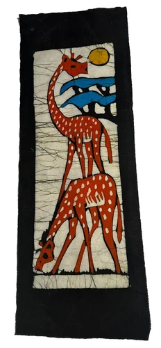 African Hand Dyed Batik Fabric Wax Ethnic Giraffe Artwork Wall Hanging LRGE VTG