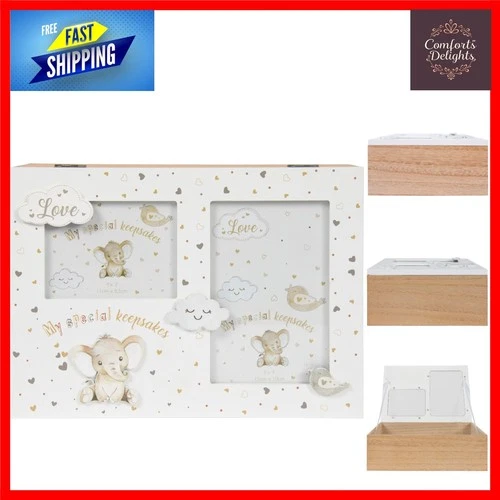 Charming Baby Keepsake Memory Box Photo Frame Elephant Design 26x19x9cm