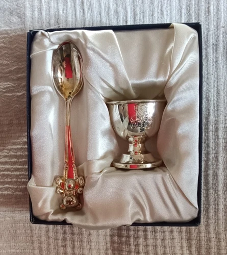 Silver-Plated Egg Cup and Spoon Set Christening Gift for Kids