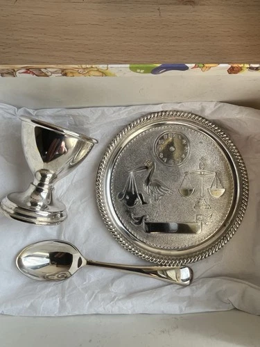 Seba Vintage Silver Plated Christening Set. Plate, Egg Cup And Spoon.