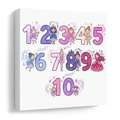 Numbers Counting Pink Princess CANVAS WALL ART Decor Baby Girl Bedroom Picture