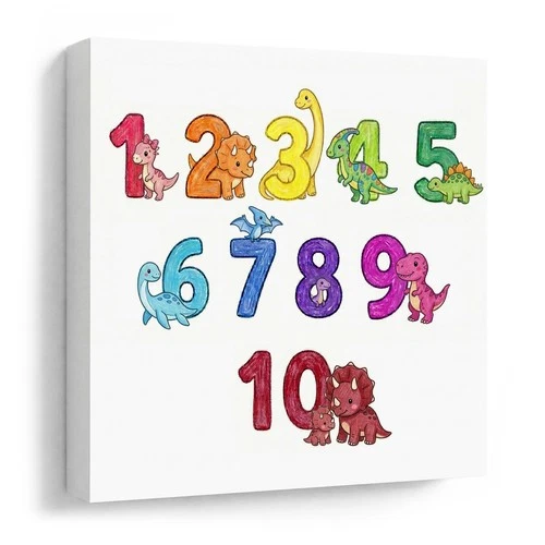 Numbers Dinosaurs Counting CANVAS WALL ART Kids Nursery Baby Childrens Bedroom