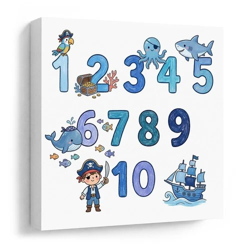 Numbers Pirates Blue CANVAS WALL ART Kids Nursery Decor Baby Boy Bedroom Picture
