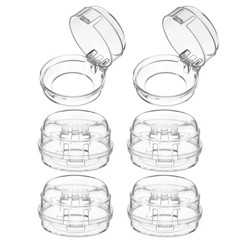6 Pack Stove Knob Safety Covers for Child Baby Proof Clear Transparent White