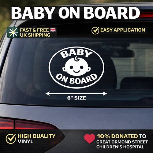 Baby On Board Car Sticker 6" Vinyl Decal Baby Safety Window Sign Cute Baby Face