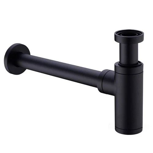 Brass Bottle Trap 1 1/4, Round Decorative P-trap, Adjustable Matte Black