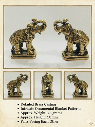 Pair of Miniature Brass Elephant Statues - 25mm Lucky Feng Shui Decor Figures