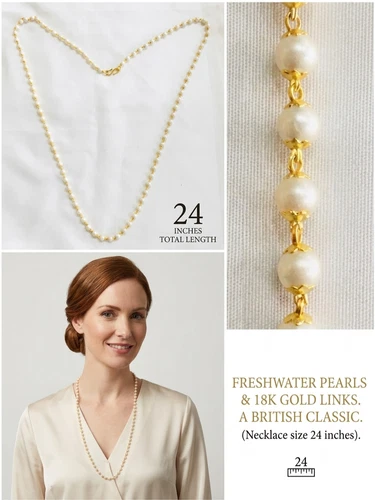 Freshwater Pearl Necklace 18K Gold PlatedLinks 24" British Classic Elegant Chain