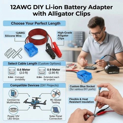 High Current 12Awg Battery Powering Clip Adapter For Multiple Applications