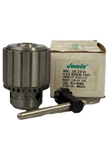 Jacobs 33B 3/8 USA 5/64-1/2" Capacity Drill Chuck W/Key 3/8-24 Thread Mount