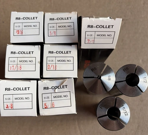 R8 Collet 7 Pc Set 3/16" 5/16" 3/8" 9/16" 5/8" 11/16" 7/8" New Sealed + 3 Used