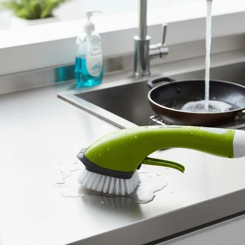 Soap Dispensing Dish Brush Easy to Refill Handled Pot Scrubber Protects Hands