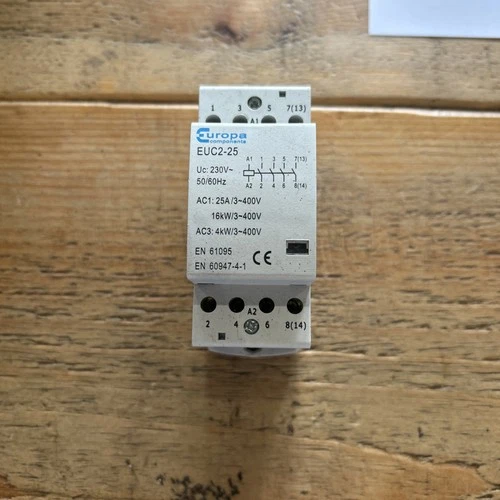 EUROPA 25Amp CONTACTOR 4Pole N/open 230V Coil EUC2-25