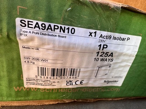 Schneider SEA9APN10 Acti9 Isobar P 125A 10 Way Distribution Board Type A PoN