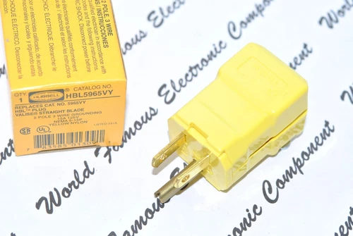 1pcs - HUBBELL HBL5965VY 15A 125V 5-15P Yellow Nylon Straight Plug - NIB