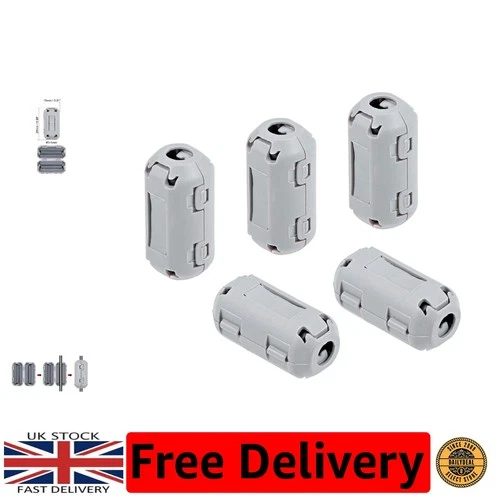 RFI EMI Noise Reduction Clips - 5-Pack Grey 3.5mm Ferrite Core Cables Filters