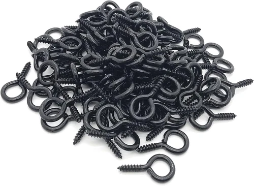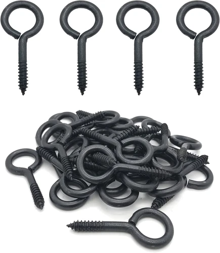 30 Pcs 2 Screw Eye Hooks Metal Zinc Plated Black Self-Tapping Eyelets