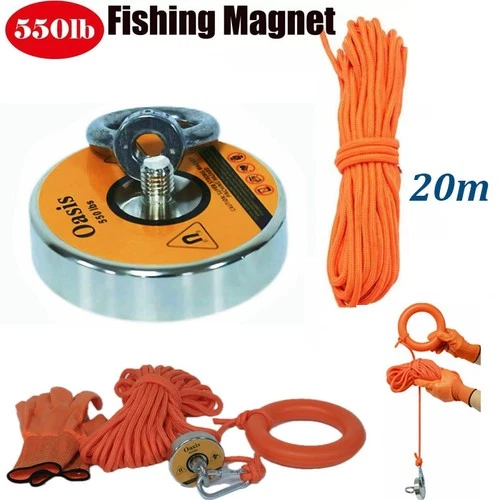 550 LB Fishing Magnet Kit Strong Pull Force with Rope & Carabiner, Gloves❤️