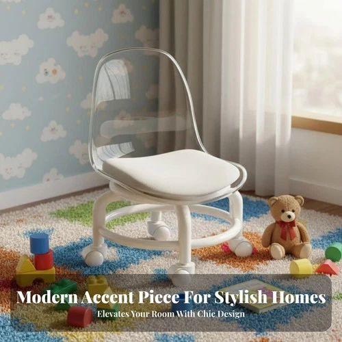 paddinged Caster Stool Transparent frame Mobile Seating Ergonomic Design for