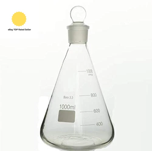 1000ml 33.8oz Narrow Mouth Erlenmeyer Flask with Glass Stopper