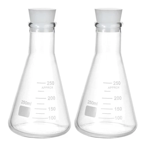 2 Set 250ml 8.5oz Narrow Mouth Glass Erlenmeyer Flask with Silicone Stopper