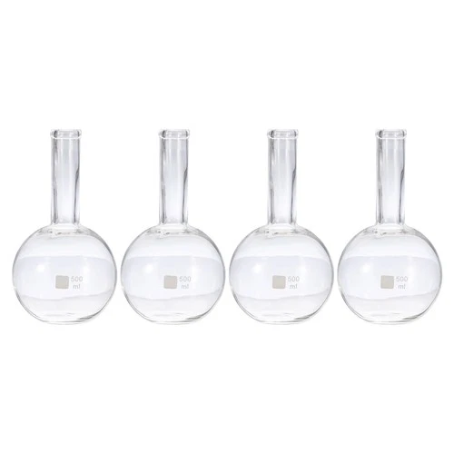 500ml Boiling Flask, 4Pcs Glass Single Neck Flat Bottom Flask