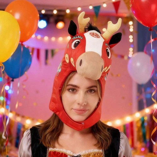Chinese New Year 2026 Horse Headband Red Plush Lucky Fu Character Headdress M5S8