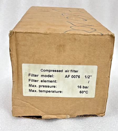 COMPRESSED AIR FILTER MODEL: AF 0076 SIZE: 1/2 PRESSURE: 16BAR MAXTEMP: 60C
