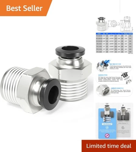 Durable Copper and Plastic Push Fittings 1/4'' OD x 1/2'' NPT - Set of 2