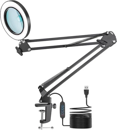 Jubor Magnifying Glass Light Stand 10X 8X LED Magnifying Lamp Clamp RRP £29