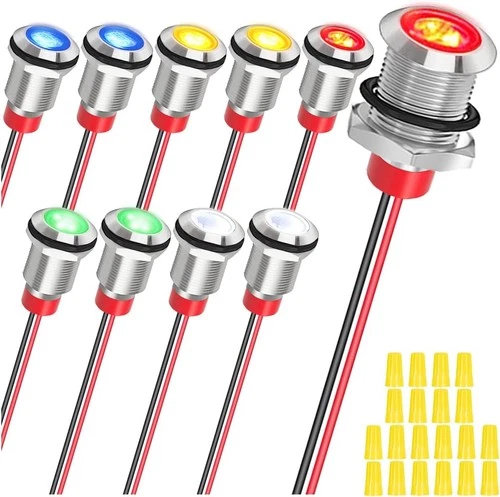 10Pcs AC/DC12-24V LED Indicator Lights 10mm Waterproof Flat Head Signal Lamp 5Co