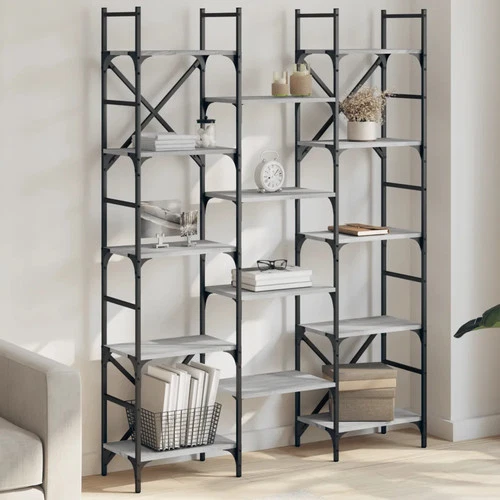 Bookshelf Grey Sonoma 127.5x28.5x172.5 cm Engineered Wood & Steel Open Shelves