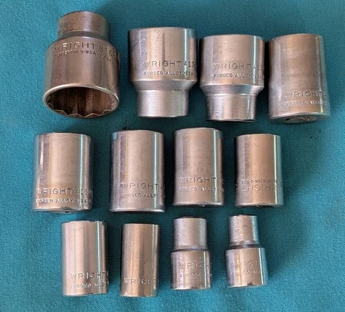 WRIGHT TOOLS 12pc. Standard Shallow Socket Set 1/2" Dr. x 12 Pt. ca. 1955-78