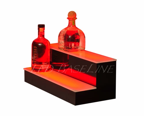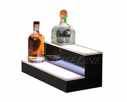 21" 2 Tier Step - LED Lighted Back Bar Liquor Bottle Shelf Glowing Display Stand
