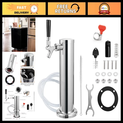 Single Tap Draft Beer Tower Dispenser Kit - Stainless Steel, Countertop & Kegera