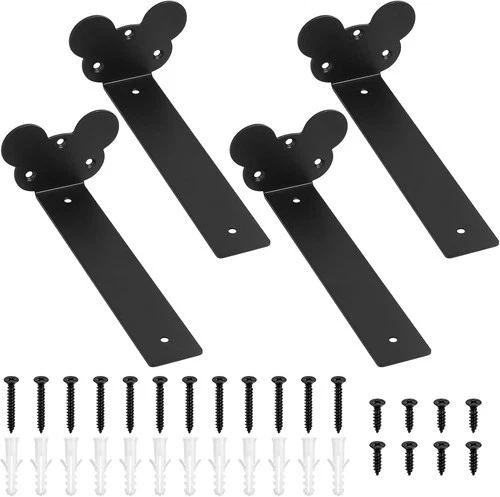 Heavy-Duty Floating Shelf Brackets 4 Pack L-Shaped Solid Steel Black 200x38mm