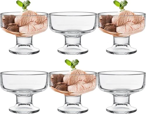 LONTOM Set of 6 Glass Dessert Bowls 200ml Ice Cream Sundae Trifle Serving Dishes