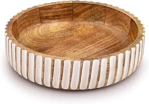 Kimona Mango Wood Fruit Bowl Decorative Serving Dish Kitchen Counter Farmhouse