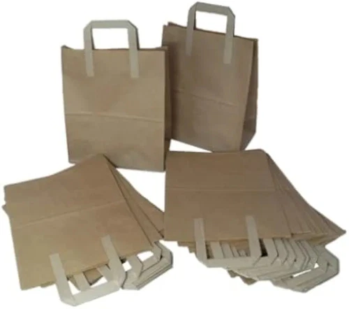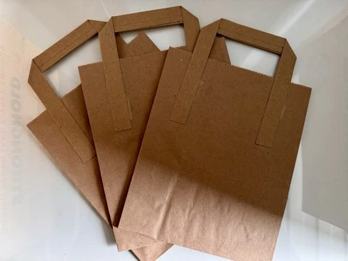 250 Small Brown Paper Bags Handled Flat Handled Carrier Bags Takeaway Brown