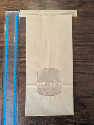 £ Bread Bag Brown with Window & Perf holes 230+95 x 390 mm x 500 Bags B00822