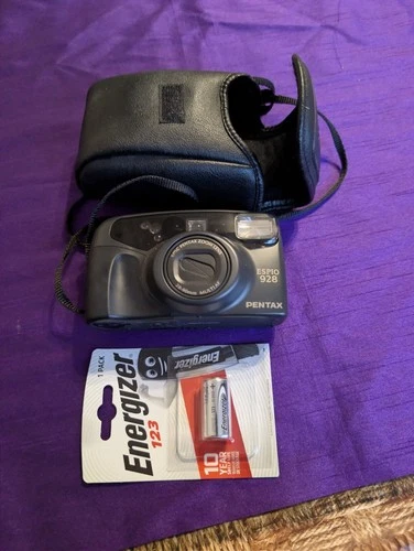 Pentax Espio 928 35mm Film Point and Shoot Camera Black w/ Strap & Case Details
