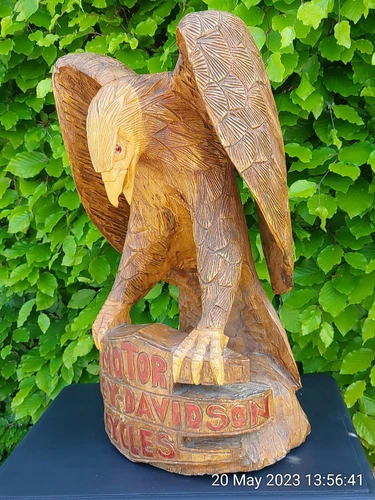 Harley Davidson Vintage SculptureCarved Wooden Eagle Man Cave Memorabilia