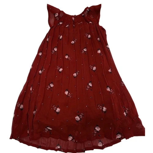 OshKosh B'gosh Toddler Girls Red Floral Chiffon Pleated Dress 4T 4A GCL104578