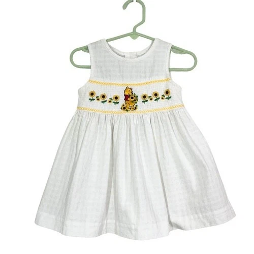 Disney Baby Winnie the Pooh Smocked Dress Sunflower Embroidered White 18M