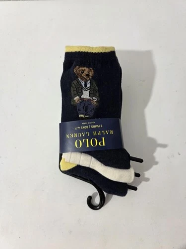 Polo Ralph Lauren Boy's Polo Bear Winter Colorful Crew Socks 3-Pack Size 10-13