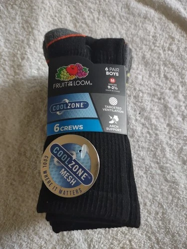 6-pack of Fruit of the Loom Boys' CoolZone Cushioned Crew Socks