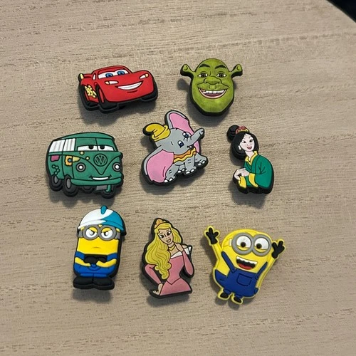 Cars Shrek Dumbo Minions Aurora Mulan Croc Charms Set Of 8 Shoe Jewelry