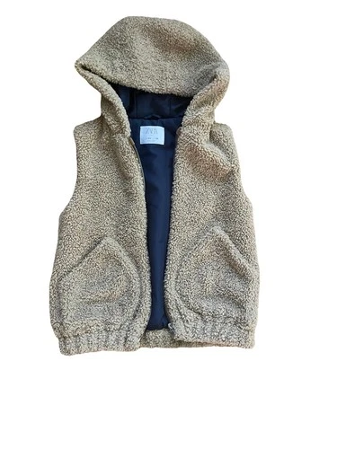 Zara Kids Fuzzy Teddy Vest Hooded Zip Front Sherpa Outerwear Size 11 / 12